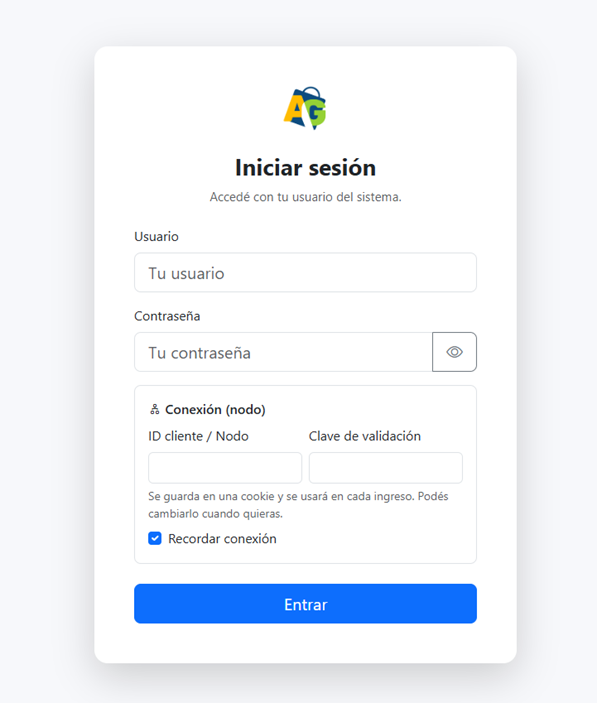 Si activa la opción “Recordar conexión”, en los próximos ingresos solo deberá ingresar usuario y contraseña, ya que los datos de conexión se completarán automáticamente al abrir la aplicación.