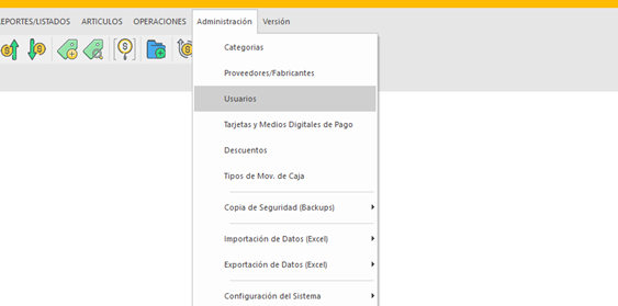 Los usuarios pueden crearse o modificarse desde el menú Administración → Usuarios.