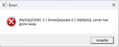 Se ha interrumpido la conexión con el servidor de base de datos. Esto puede ocurrir si el equipo entra en suspensión o ante cortes momentáneos en la conexión a internet durante la operación.